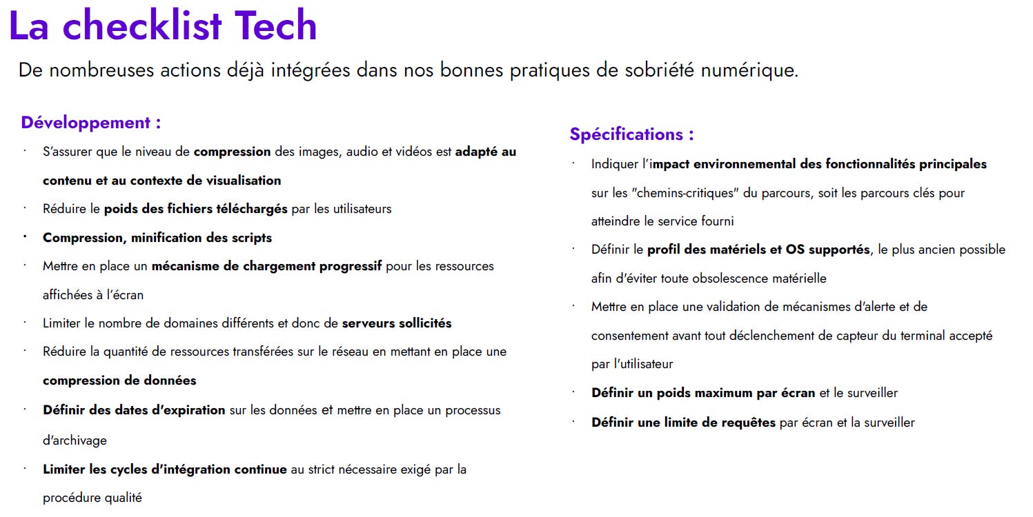 🔹 RGESN : Référentiel Général de l’Éco-conception des Services Numériques. Une grille officielle de bonnes pratiques pour intégrer l’écoconception à toutes les étapes d’un service numérique. Il est explicitement mentionné dans la Loi REEN comme référentiel recommandé.