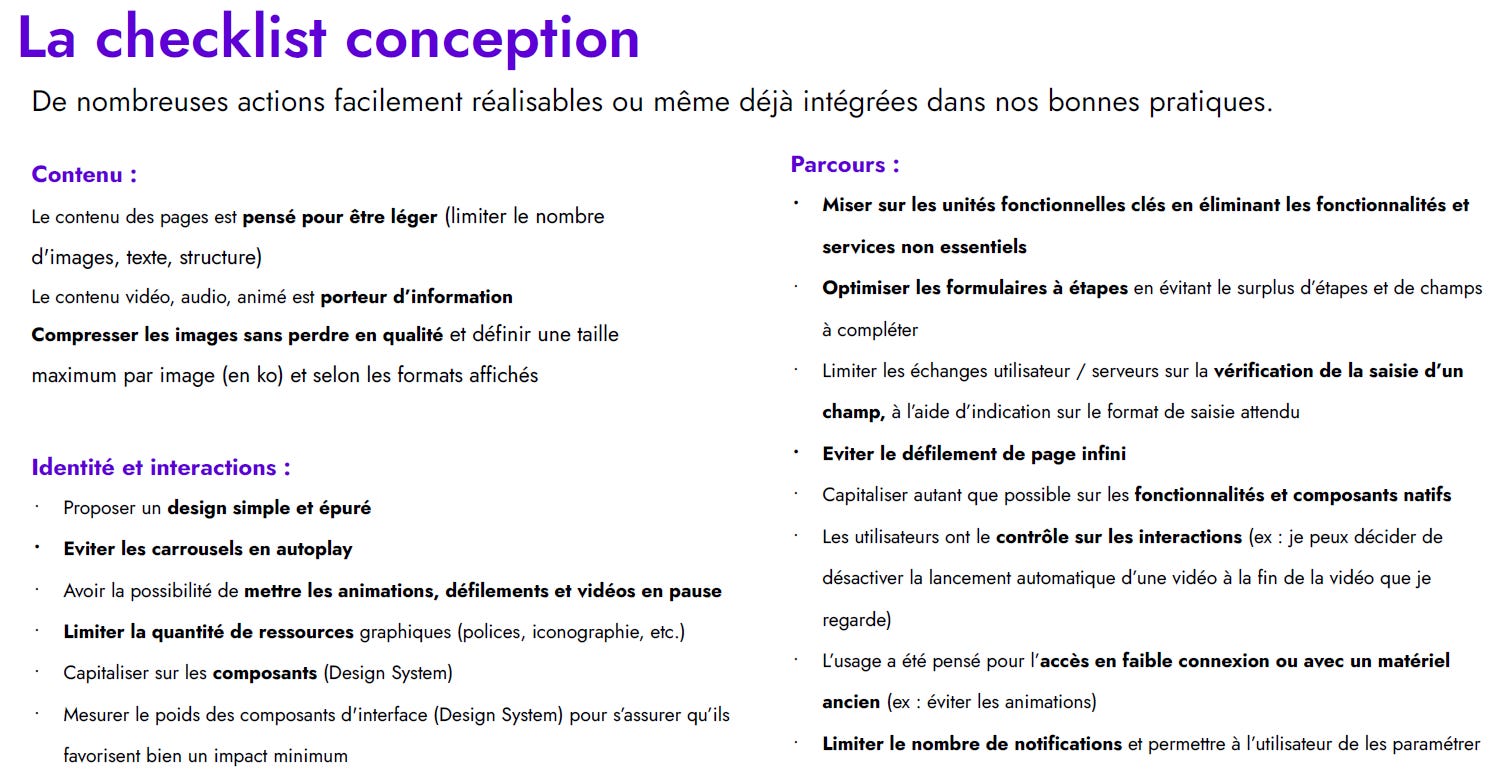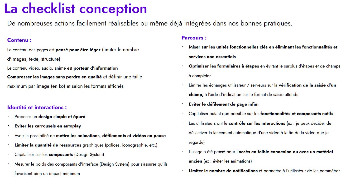 🔹 Eco-conception & Sobriété numérique : démarche de conception visant à réduire l’impact environnemental d’un service numérique tout au long de son cycle de vie, tout en garantissant utilité, performance, inclusivité et accessibilité.